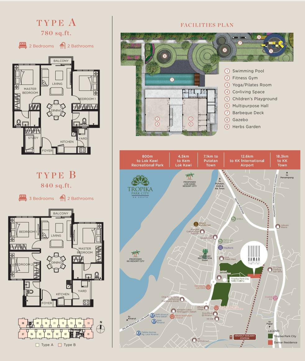 Unit 2–3 bilik, siap dengan swimming pool, gym & security 24 jam.